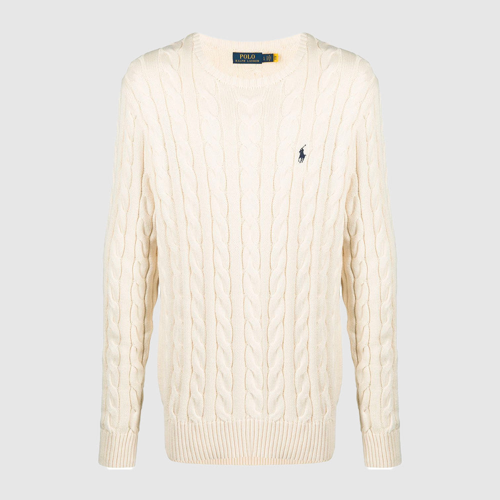 Ce pull en maille torsadée de chez Ralph Lauren est un classique revisité, idéal pour allier confort et élégance. Confectionné dans un tissu doux et de qualité, il offre une chaleur agréable, parfaite pour les journées fraîches.