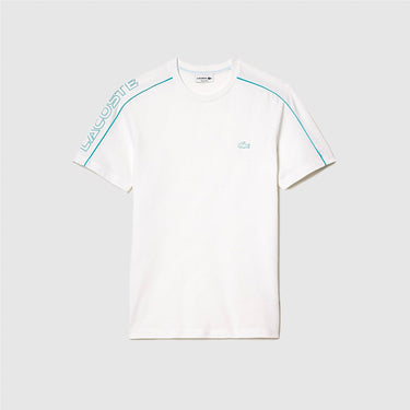 Ce T-shirt à bandes de Lacoste est conçu pour une performance optimale: sa matière en piqué technique le rend léger et extensible pour un confort sans compromis, tandis que ses propriétés absorbantes gardent votre peau sèche et à l'abri. Disponible en deux coloris: blanc et bleu, noir et jaune.