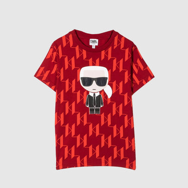 Optez pour ce t-shirt Karl Lagerfeld Kids rouge avec l'icône "KARL" sur le torse et un fond en monogramme. Un t-shirt facile à porter et classe qu'il faut dans l'armoire de vos enfants.