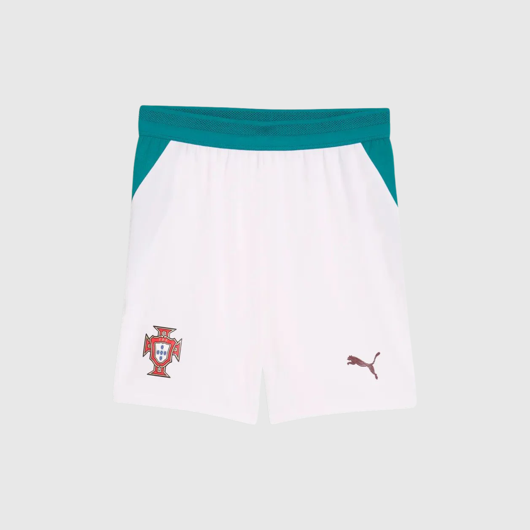 Sa taille élastiquée avec cordon de serrage assure un ajustement précis et confortable, tandis que sa coupe regular junior garantit une grande liberté de mouvement. Le design est complété par le blason de la Fédération Portugaise (FPF) et le logo Puma, pour un look fidèle à l’équipe nationale.