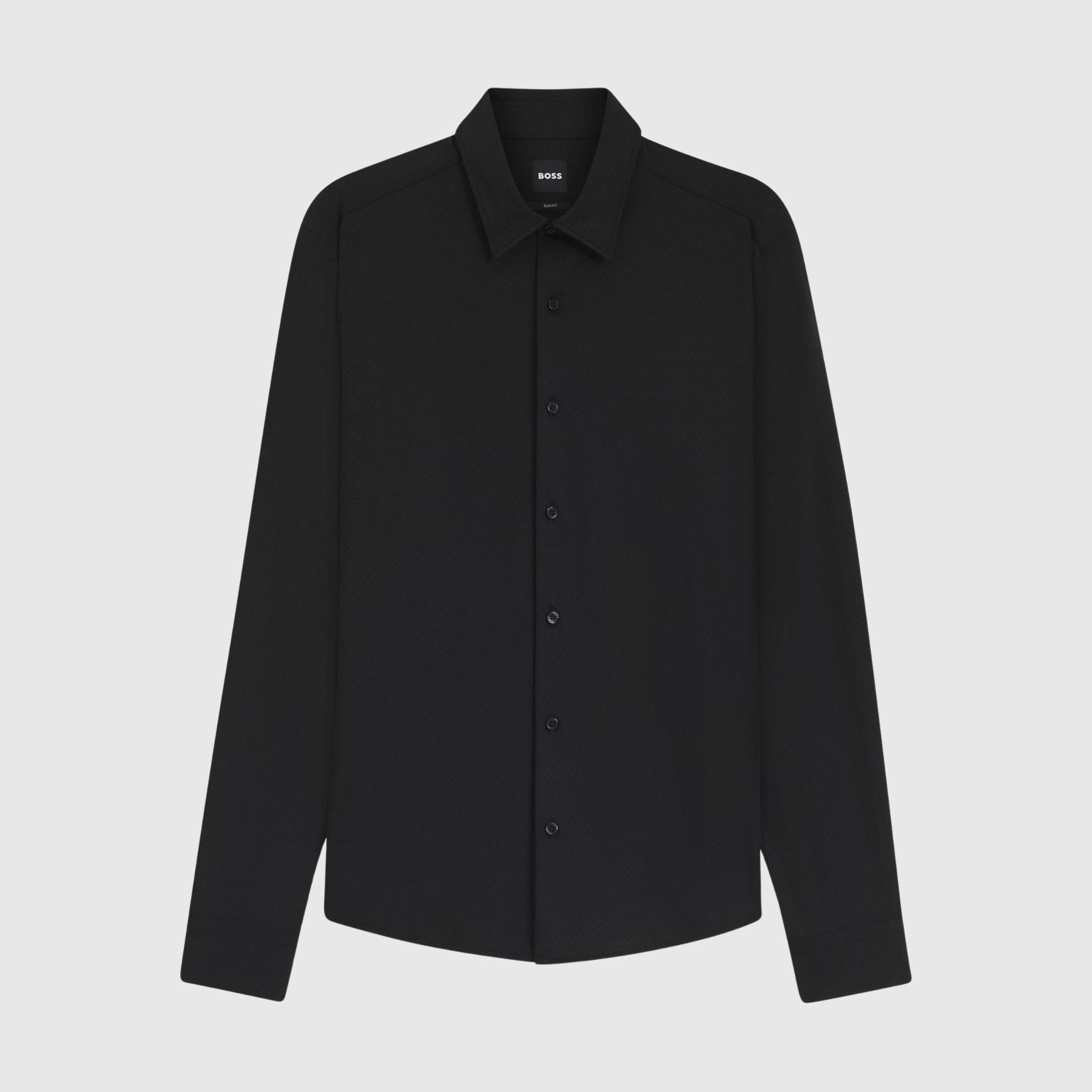 Innovation textile et élégance contemporaine se rencontrent dans cette chemise BOSS slim fit conçue en jersey stretch structuré performant.