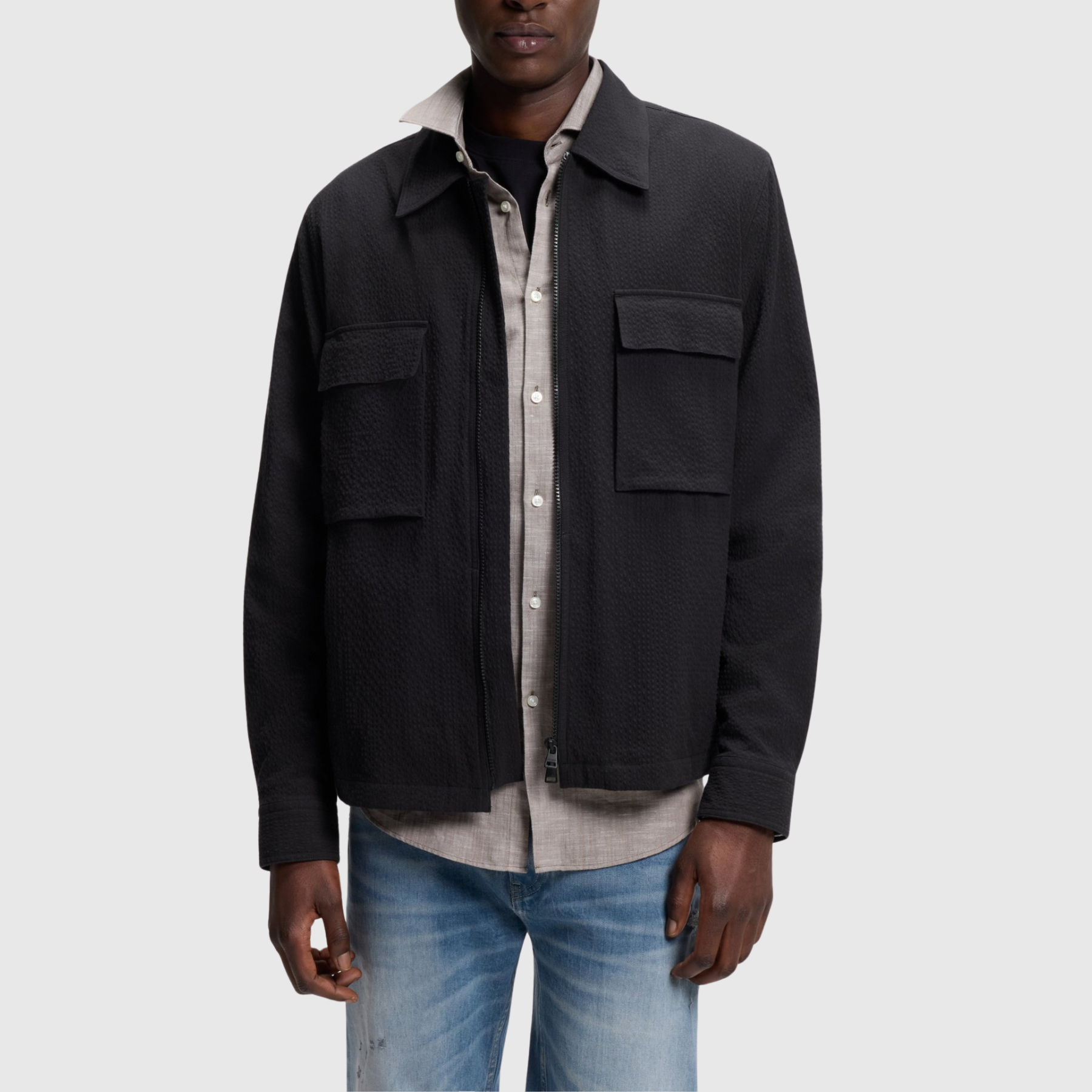 Chemise HUGO Oversize en Seersucker de Coton Stretch Homme