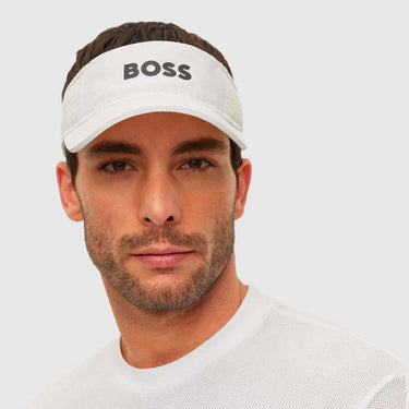 Retrouvez cette superbe visière en mesh proposée par Hugo Boss. La marque vous accompagne durant vos séances de sport en vos offrant confort et style grâce à sa matière et son logo sur l'avant.