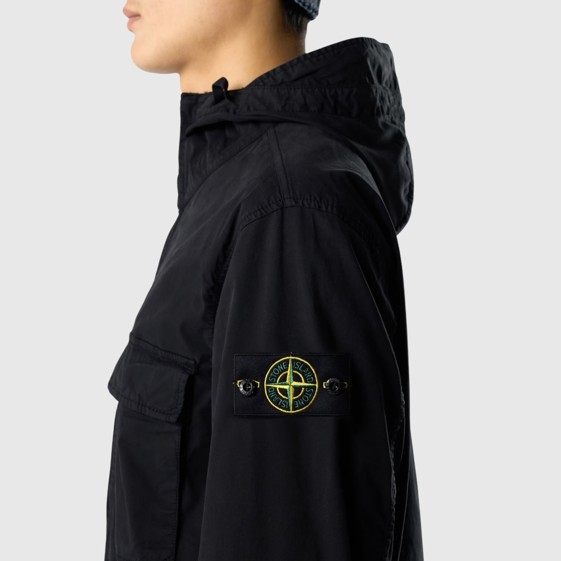Cette veste Stone Island à capuche assure une protection supplémentaire contre le vent et les petites pluies, tout en conservant une coupe confortable et fonctionnelle. Facile à porter, elle s’intègre parfaitement dans un vestiaire urbain et moderne.