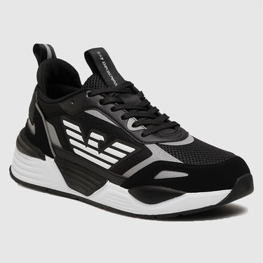 Les baskets Ace Runner d'Emporio Armani sont élégantes et confortables, fabriquées en simili cuir et ornées d'un logo de la marque. Elles sont dotées de cordons pour assurer un maintien sûr et équilibré, avec un bout arrondi pour un grand confort. L'intérieur est doublé et la semelle est en caoutchouc antidérapante pour une stabilité optimale.
