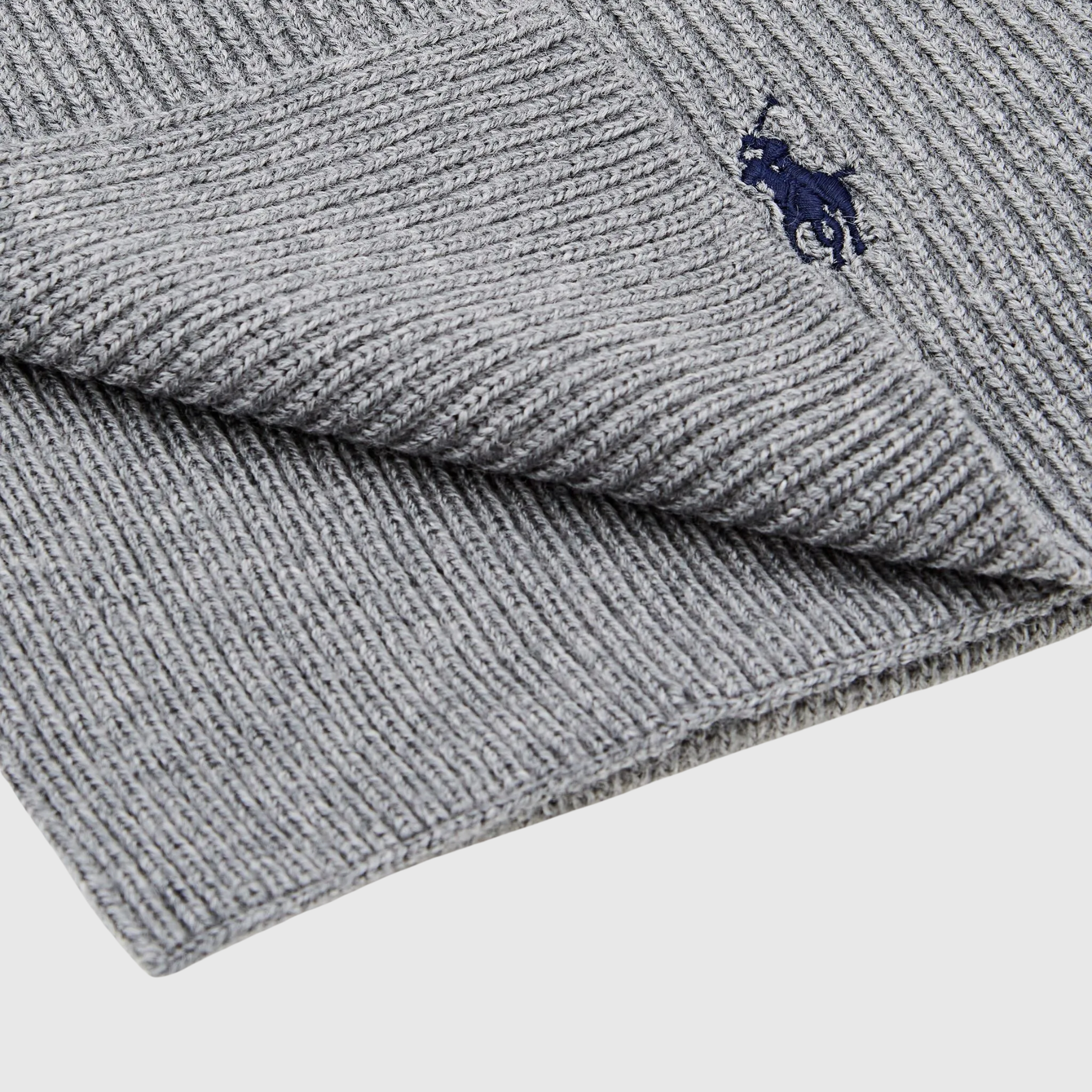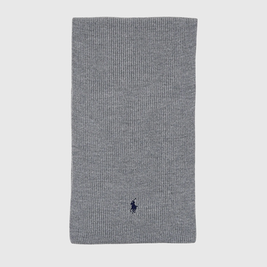 Écharpe Ralph Lauren en Laine Côtelée Grise à Logo Brodé