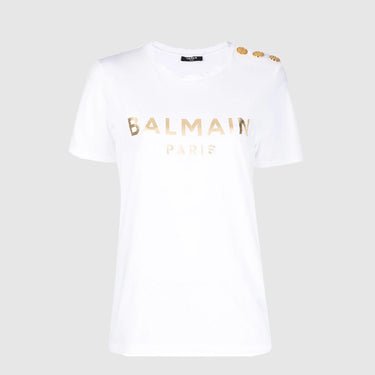 T-shirt à Col Rond avec Boutons Embellished – Balmain