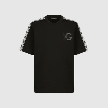 Découvrez ce t-shirt Dolce & Gabbana il reprend l'image luxueuse de la marque grâce à de nombreux éléments. Il contient un logo DG entrelacé placé sur le torse et de nombreux autres sur les manches. Ce t-shirt Dolce Gabbana à bandes logo est composé principalement en coton et nylon puis fabriqué avec le savoir faire Italien propre à la marque.