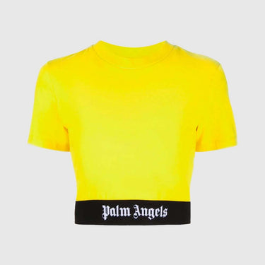 Ce t-shirt de la marque Palm Angels allie style et confort grâce à sa coupe régulière et courte. L'élastique à logo à la taille offre un ajustement parfait, tandis que la marque renommée ajoute une touche d'élégance. Parfait pour un look décontracté et tendance.