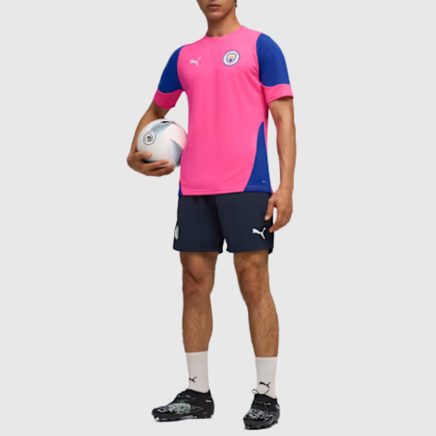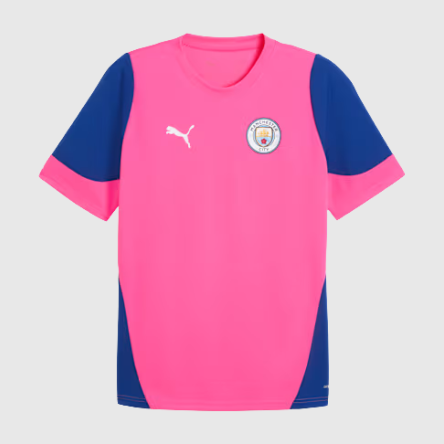 Le coloris rose apporte une touche audacieuse et contemporaine, tout en conservant l’identité visuelle du club. Les éléments graphiques et le blason officiel affirment l’appartenance au mythique Manchester City, référence incontournable du football européen.