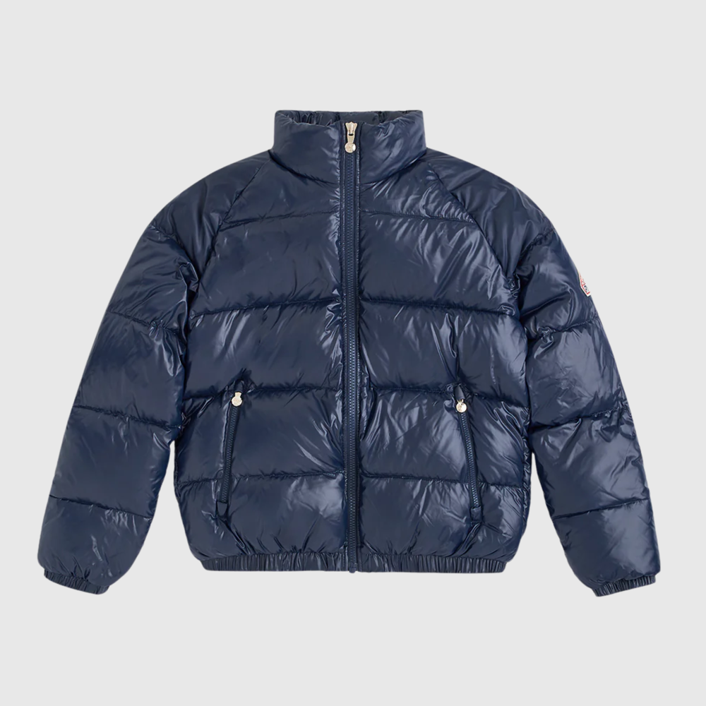 Fabriquée à partir de taffetas brillant 100 % polyamide d'origine française, elle est garnie de duvet de canard d'Aquitaine (90 % duvet, 10 % plumettes) avec un pouvoir gonflant de 750 cui/lb, garantissant une isolation thermique inégalée.