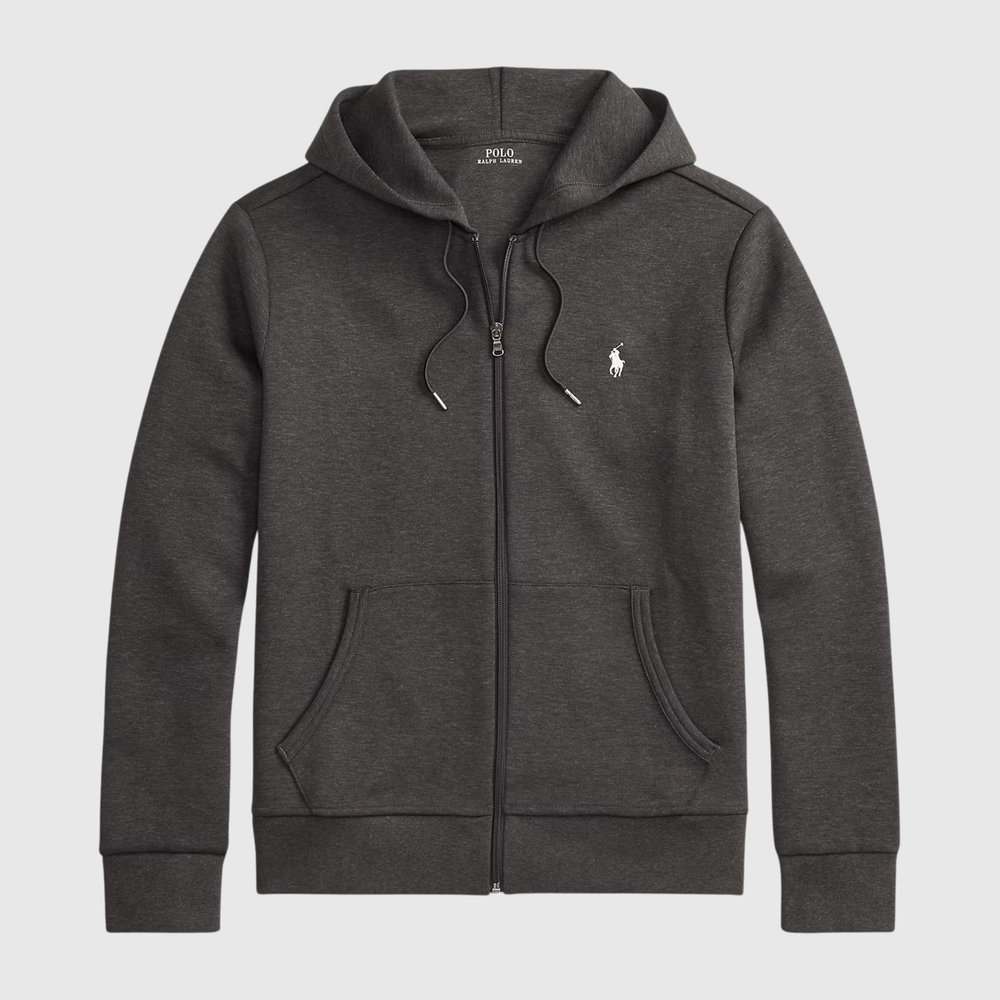 Sweatshirt Zippé Gris à Capuche en Maille Double – Ralph Lauren
