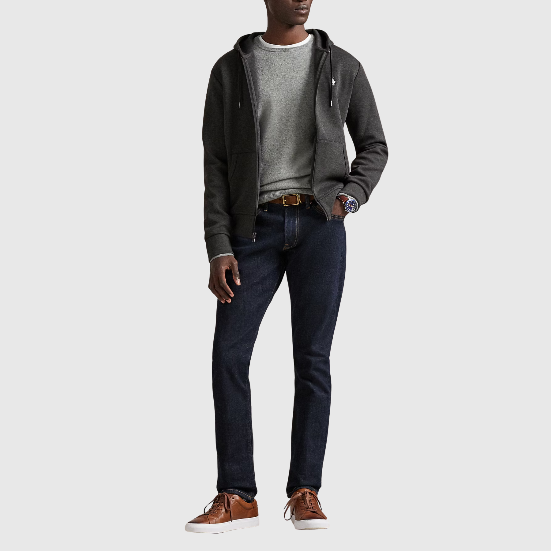 Le gris intemporel permet de l’assortir facilement, qu’il soit porté pour les journées actives, les moments de détente ou comme pièce layering urbaine. Le Poney brodé apporte la touche iconique Ralph Lauren, discrète mais immédiatement reconnaissable.