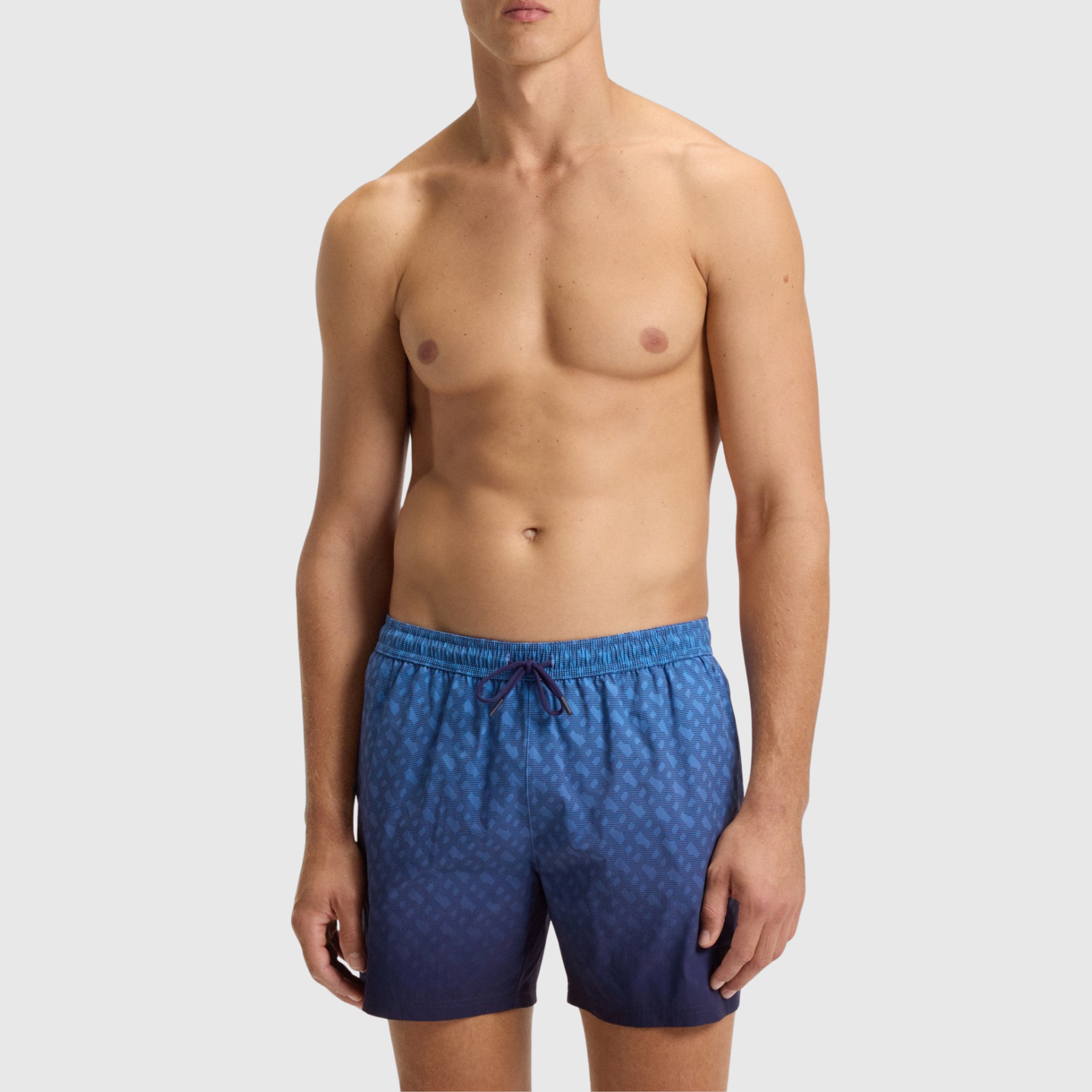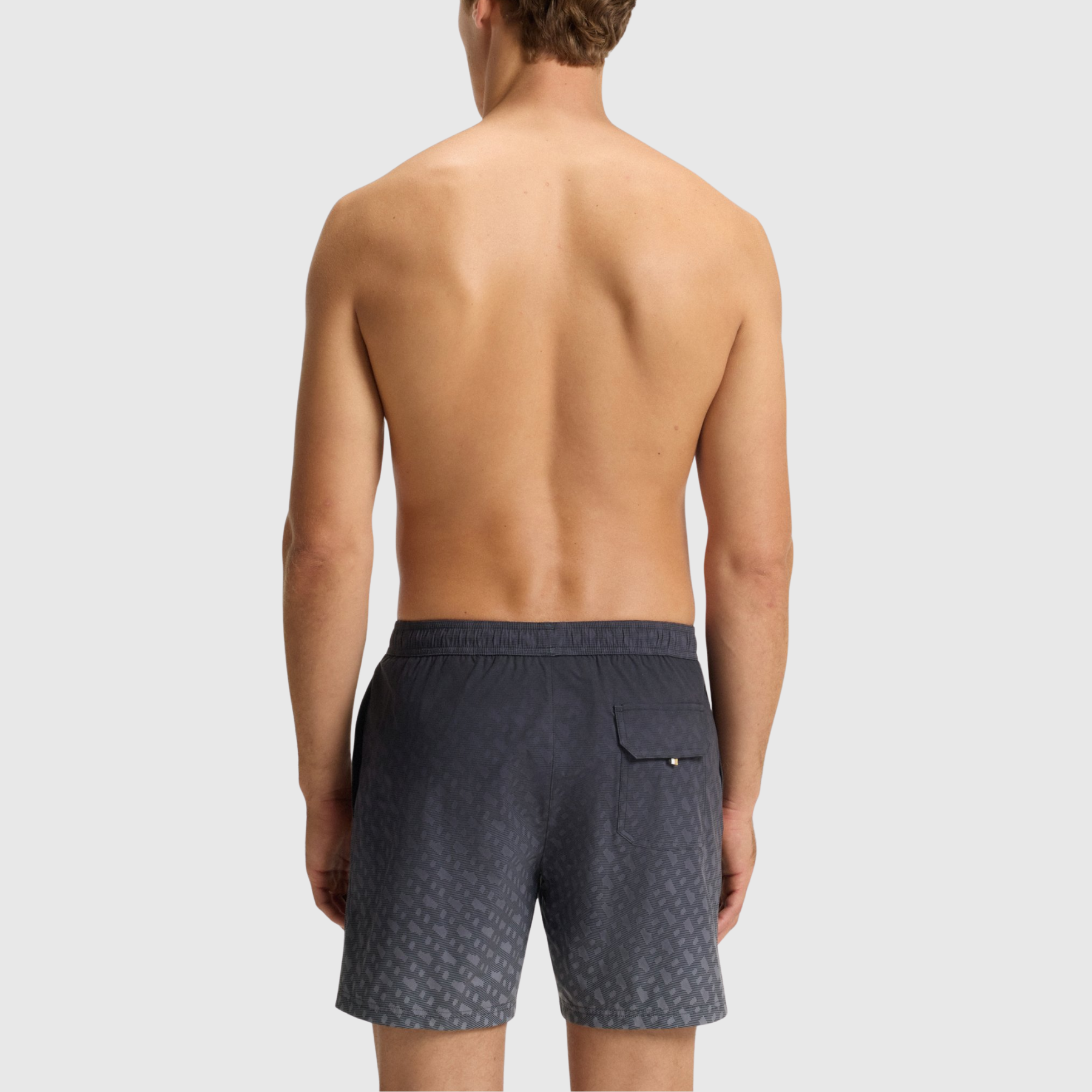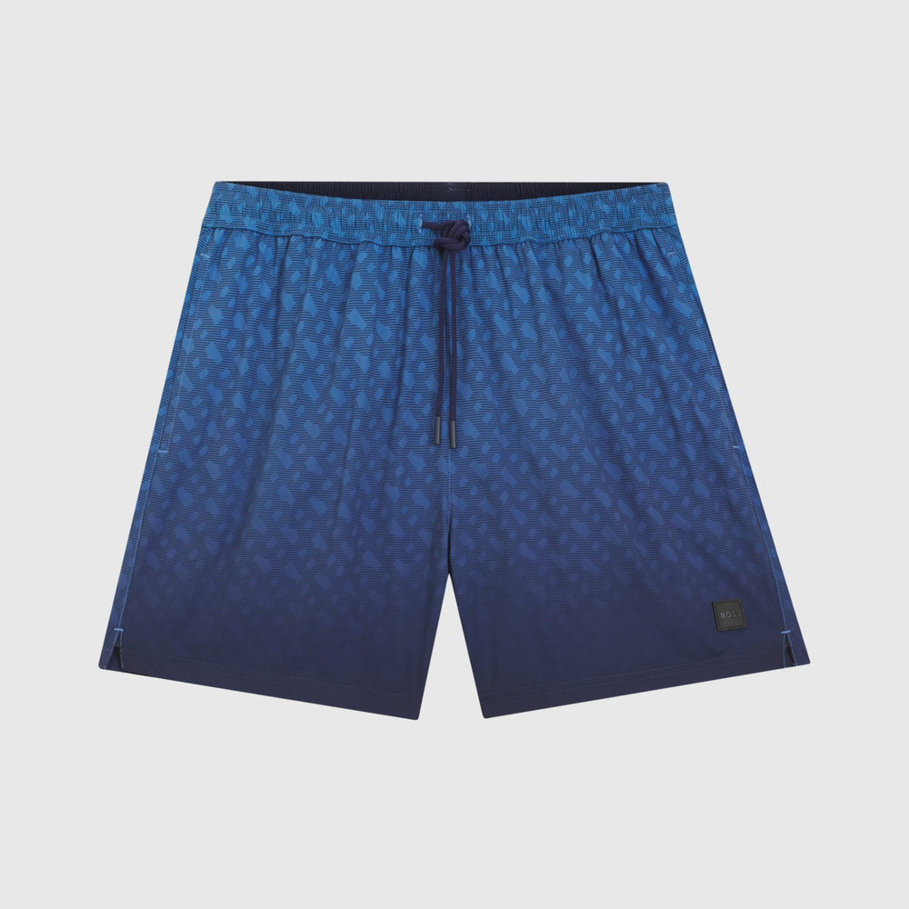Allure premium et esprit estival assumé : ce short de bain BOSS se distingue par son imprimé monogramme élégant et son badge logoté emblématique, signature d’un style moderne et sophistiqué.