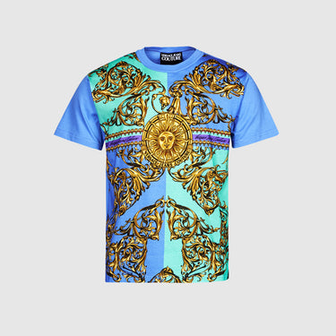 Découvrez ce fabuleux t-shirt Versace Jeans Couture. Versace connu pour sa haute couture et son image de marque époustouflante, Versace a su faire preuve de créativité en utilisant 3 couleurs assorties ainsi qu'une conception d'un modèle décontracté et luxueux avec un motif baroque doré .