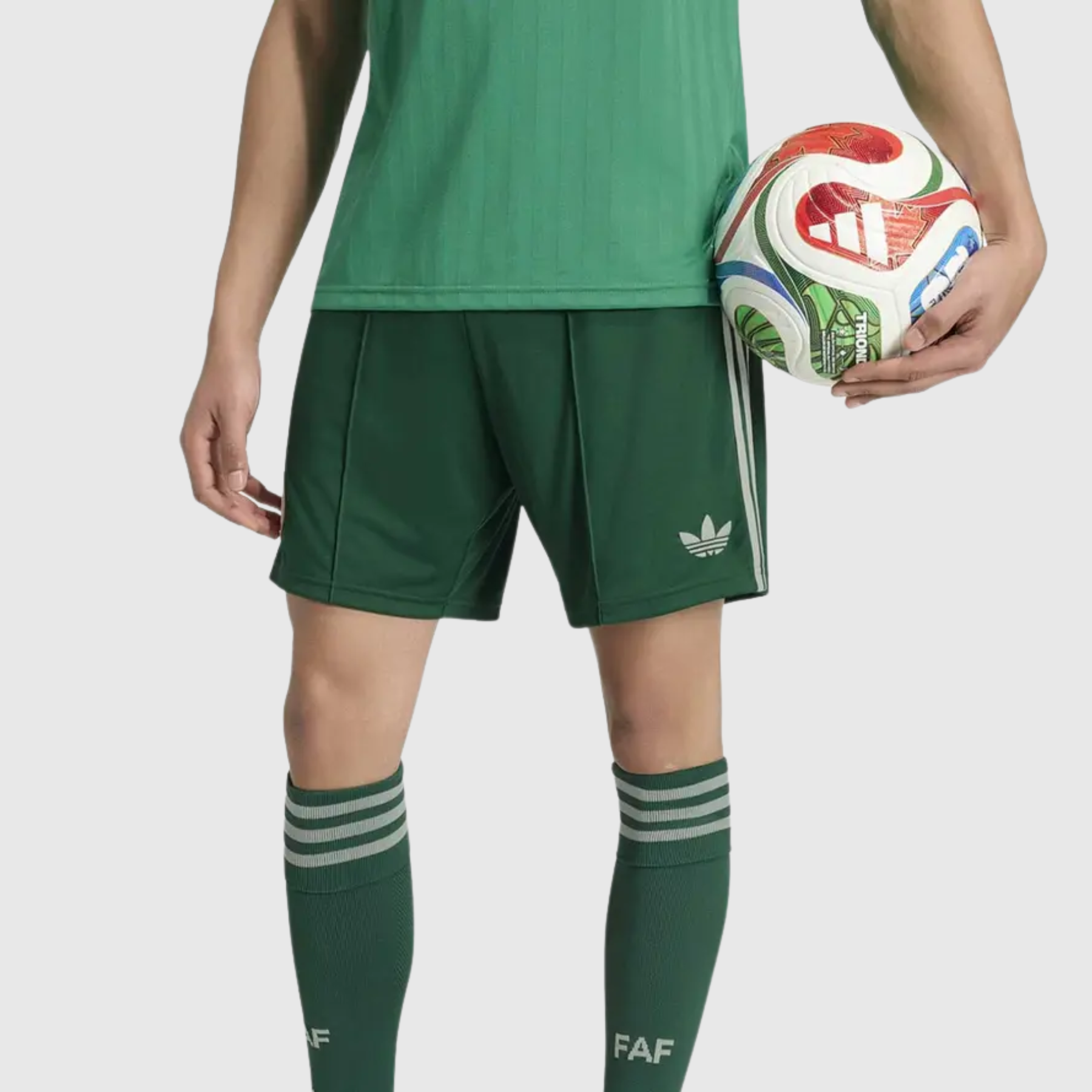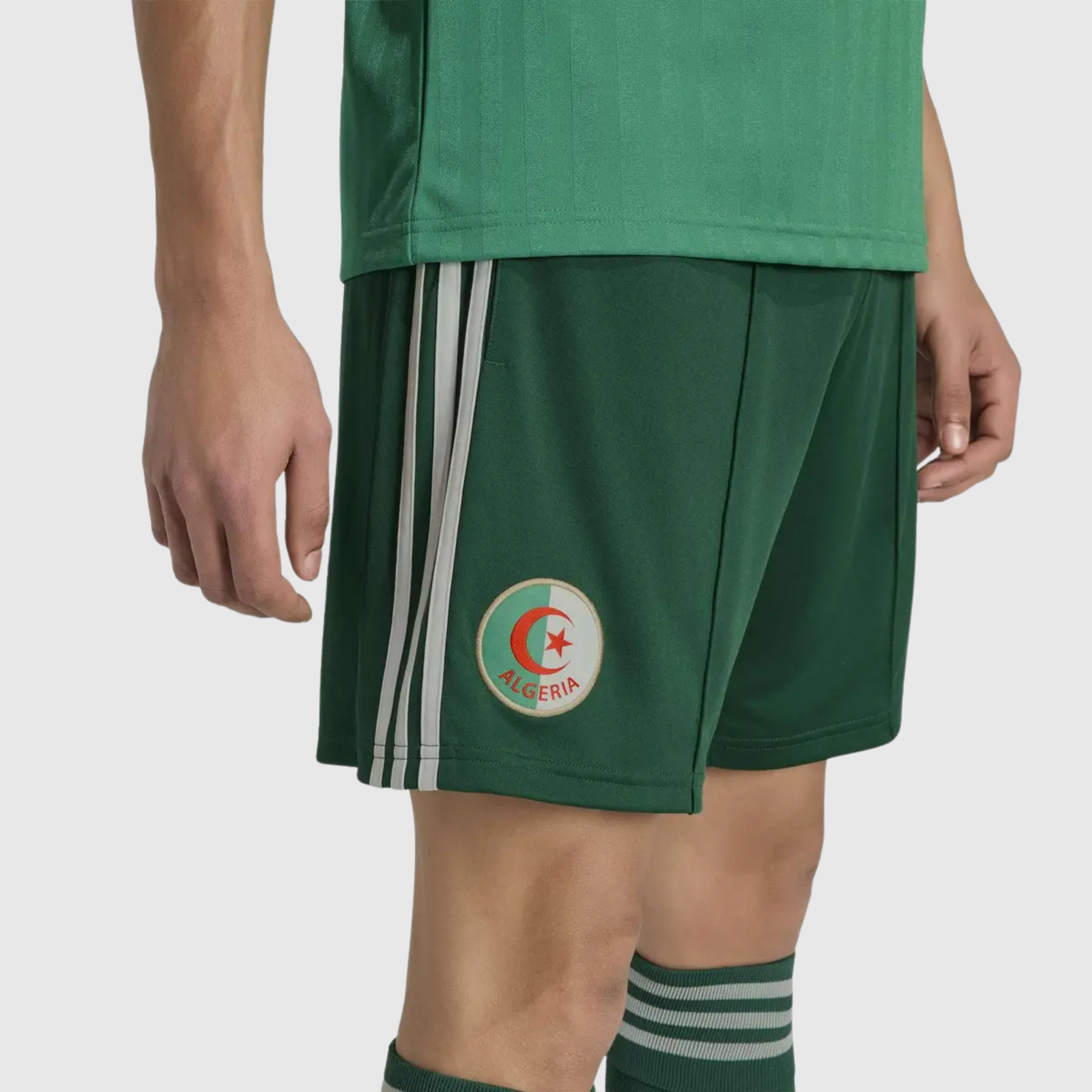 Avec quels articles ce short se coordonne-t-il ? Il se coordonne parfaitement avec le maillot extérieur Algérie 2025/26 (vert foncé) et les chaussettes officielles FAF pour composer un ensemble Away complet. Il peut également être porté avec la veste ou le sweat d'entraînement de la collection.