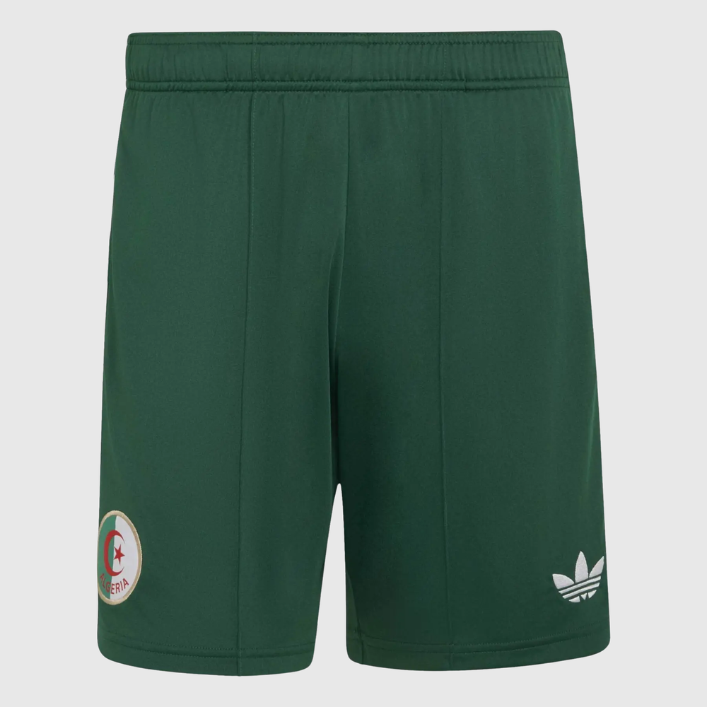 Le design de ce short est directement inspiré du Karakou, vêtement traditionnel algérien emblématique, dont les motifs ornementaux structurent la collection extérieure 2025/26. Le blason officiel de la Fédération Algérienne de Football est brodé sur la ceinture, tandis que les trois bandes Adidas courent sur les côtés pour affirmer l'authenticité du produit. La ceinture élastique avec cordon de serrage assure un ajustement confortable pour toutes les morphologies.