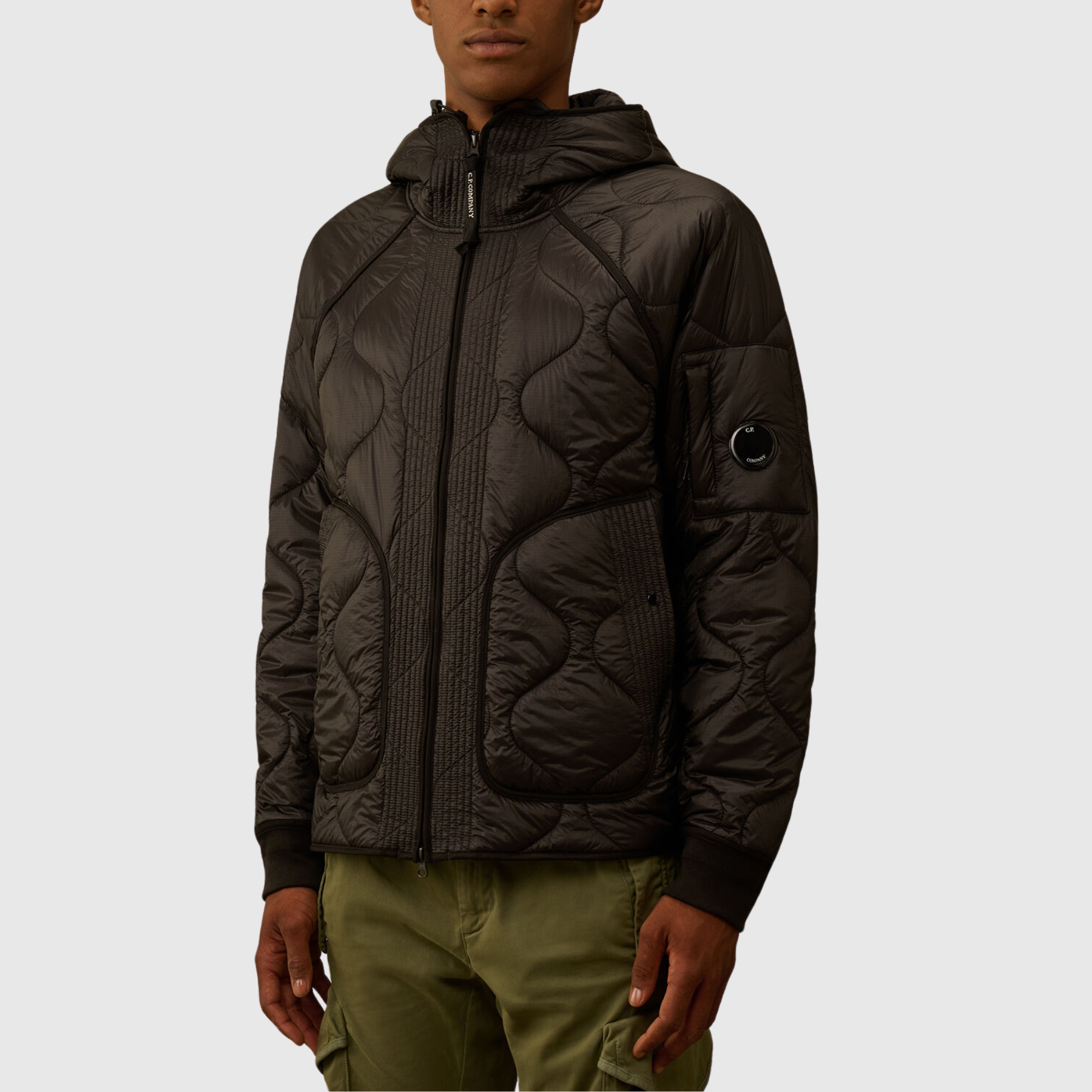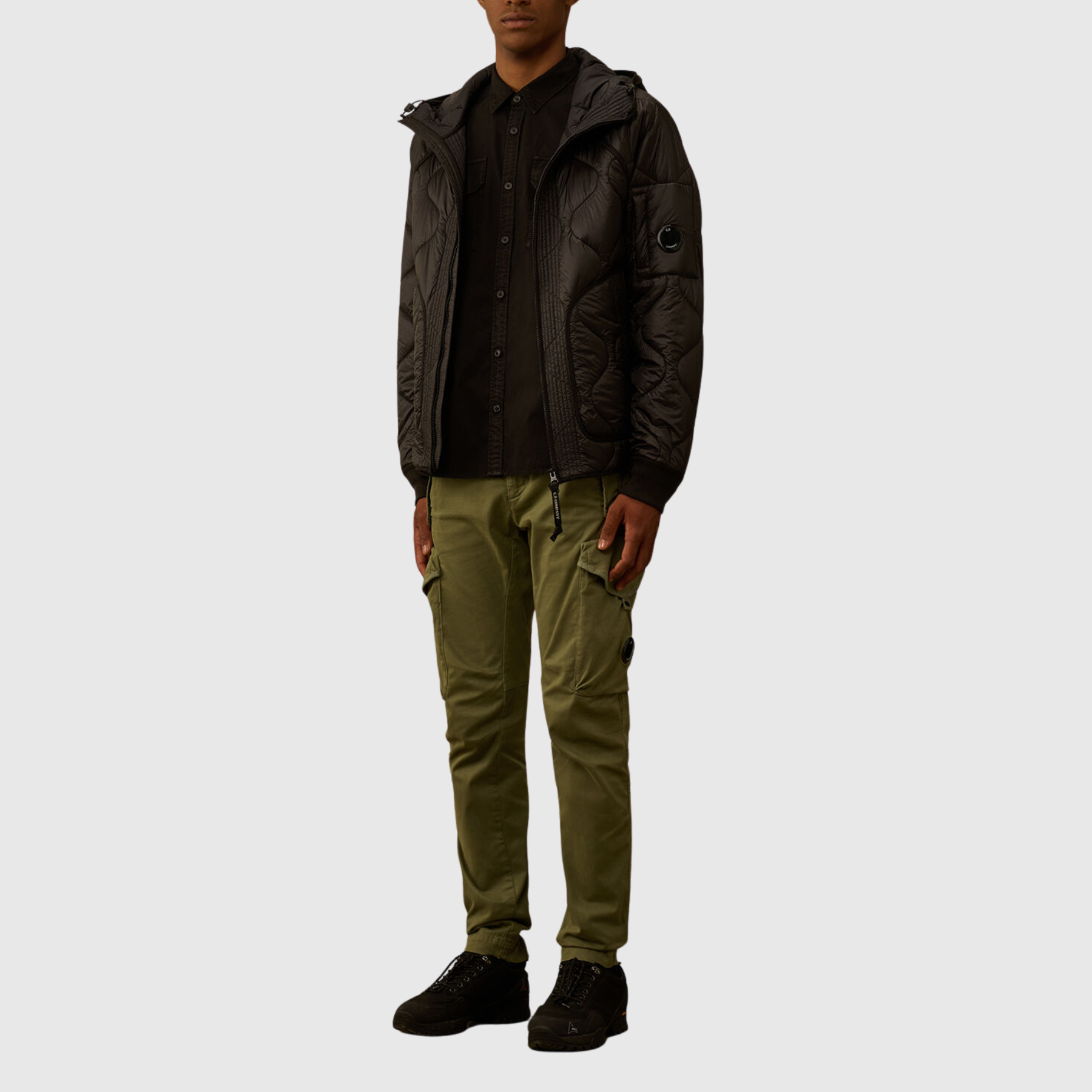 Découvrez l’excellence technique et le style raffiné de C.P. Company avec ce manteau en duvet noir, conçu pour allier protection thermique, légèreté et esthétique urbaine.