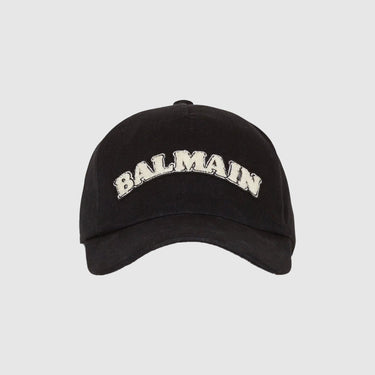 Cette casquette coupe base-ball Balmain, conçue avec une broderie en relief à l'avant et des surpiqûres sur la visière, offre un style contemporain et une finition luxueuse.